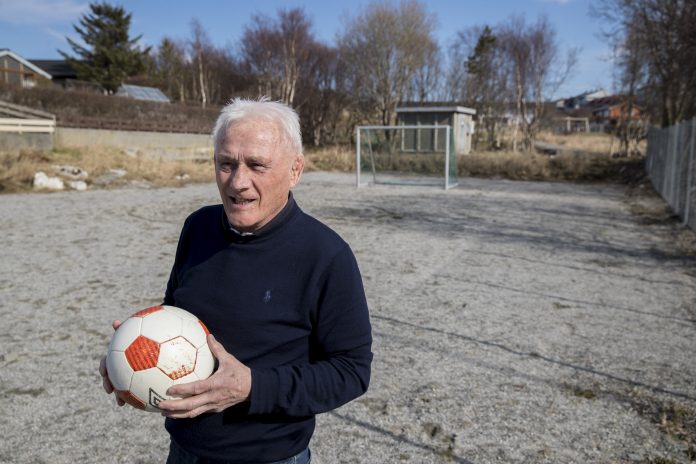Han snakker om sønnens fotballeventyr mens han står på en fotballøkke, Torsketrøa-banen, rett ved der Ole Gunnar vokste opp.