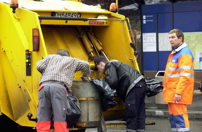 En motorsyklist i Østfold var uheldig på morgenkvisten og klarte å havne i søppelrommet på en søppelbil. Føreren skal være oppegående.