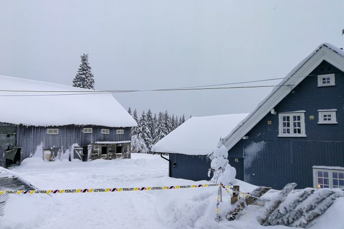 Kripos bisto under rekonstruksjonen på Jemtland-eiendommen i Brumunddal i Hedmark.