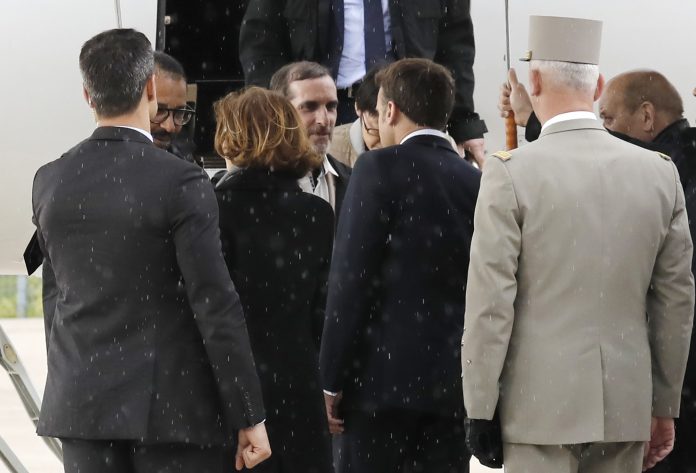 Laurent Lassimouillas og Patrick Picque ble mottatt av Macron i militærbasen Villacoublay lørdag. De møtte Burkina Fasos president Roch Marc Christian Kabore før de forlot det afrikanske landet.