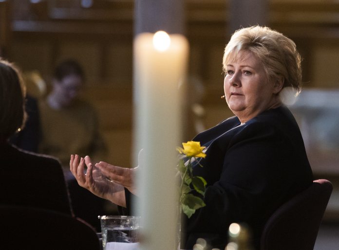 Statsminister Erna Solberg (H) vil onsdag signere en global erklæring mot spredning av voldelig innhold på internett. Dokumentet er uforpliktende, ifølge New York Times. Foto: Berit Roald / NTB scanpix