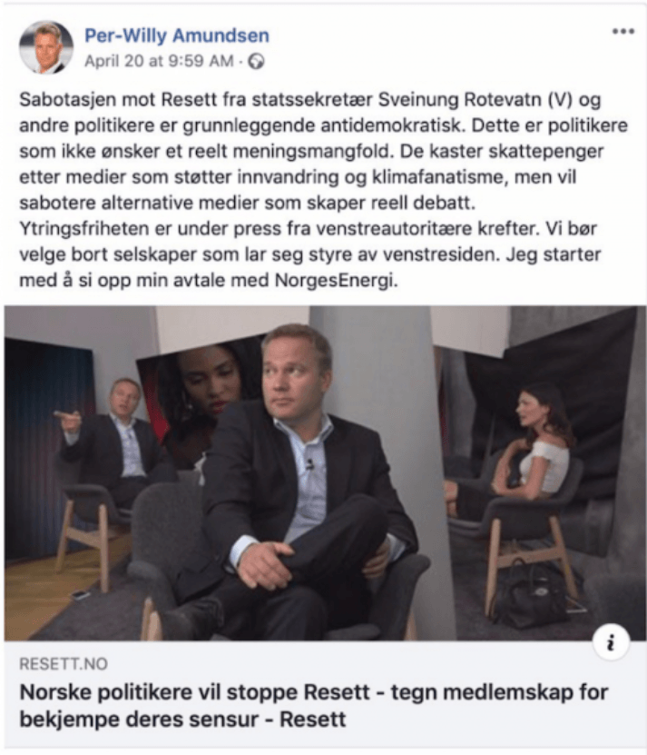 Les også: Statssekretær Rotevatn (V) mener Resett er en «kampanjeblogg»