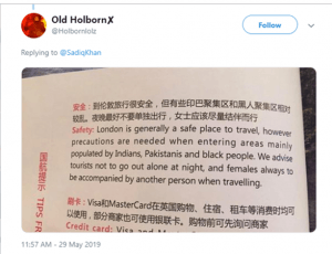 Men Khan fikk svar på tiltale, og det så det virkelig holdt, med kun et bilde fra en kinesisk turistinformasjon om London. Der står det: