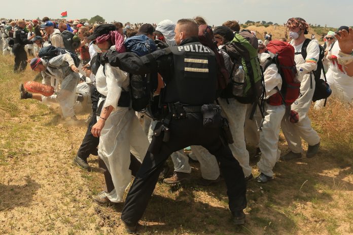 Politiet brukte pepperspray for å holde demonstrantene ute fra gruva, men greide det ikke. Politisjef Michael Mertens sa til tysk mediene at aktivistene utviste en «utrolig uforsiktighet» ved gruveområdet.