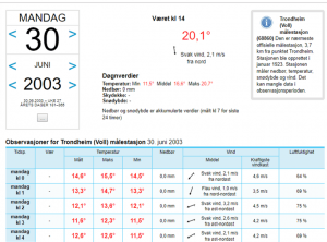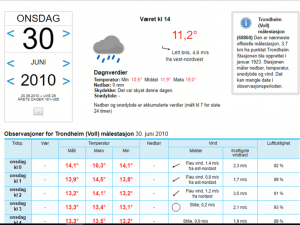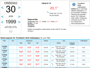 Et lite søk på Yr.no gir oss følgende informasjon: