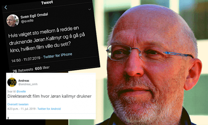 – Direktesendt film hvor Jøran kallmyr drukner, skriver twitter-profilen Andreas.