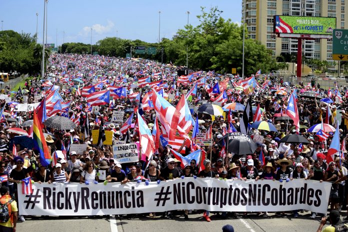 Hundretusener av sinte demonstranter, blant dem noen av Puerto Ricos mest berømte musikere, inkludert Ricky Martin, krever at guvernør Ricardo Rosselló går av.