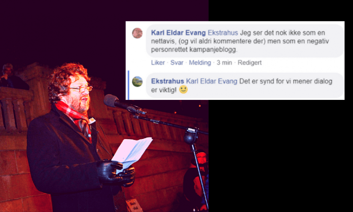 – Det er ganske uforståelig å se hvilken blogg dere annonserer på, raser Evang i kommentarfeltet til Ekstrahus på Facebook.
