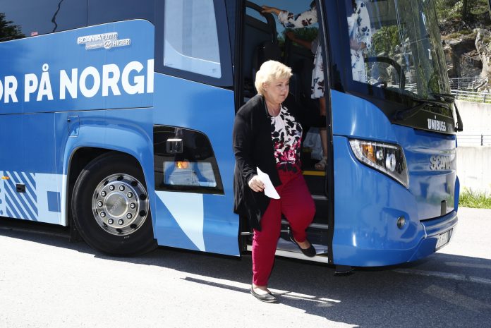 Nå lover hun at Høyres politikere skal bruke den makten velgerne gir dem i kommuner og fylker valgdagen 9. september, til at kollektivtransporten også blir betydelig mindre forurensende.