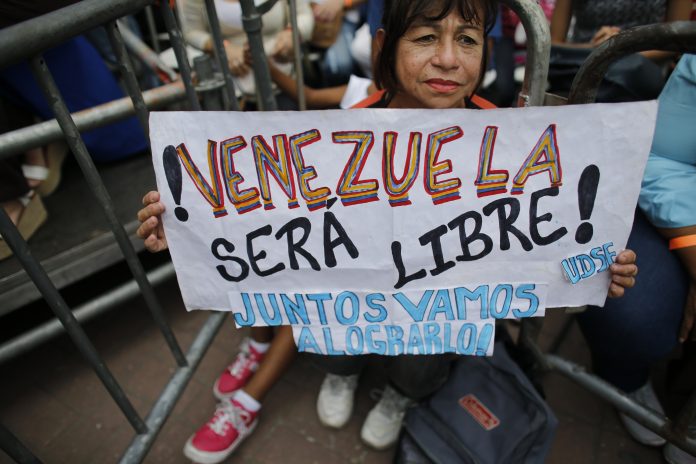 * Opposisjonen mener president Nicolás Maduros vanstyre er årsak til den dype økonomiske krisen. USA har innført sanksjoner mot presidenten og stemplet ham som diktator.