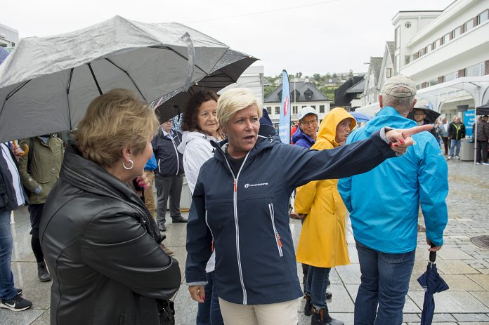 I sin tale på torget i Osøyri var motstanden mot eiendomsskatt noe av det hun trakk fram som blir viktigst for partiet i valgkampen. Her omtalte hun blant annet Trygve Slagsvold Vedum og Jonas Gahr Støre som «eiendomsskattekonger».