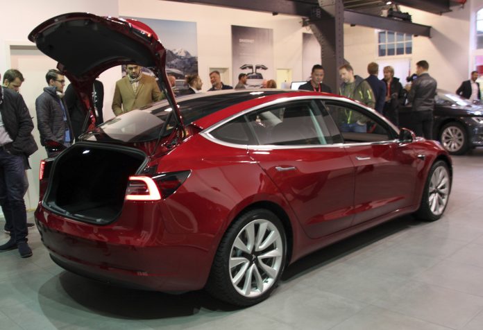 Teslas Model 3 er den mest solgte bilen i Norge så langt i år. Her da bilen for første gang vistes fram i Norge i desember i fjor. Foto: Morten Abrahamsen / NTB scanpix
