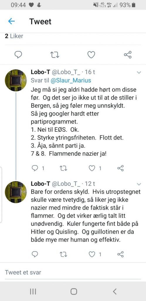 – Politiet kom tilfeldigvis, og jeg kunne ta det med ro. Men jeg må til nærmeste politistasjon og legge inn en anmeldelse. Det vil bli levert inn en anmeldelse fra meg personlig og en fra Oslo Shp, og sikkert også en fra den sentrale partiorganisasjonen i tillegg, sier Vatne.