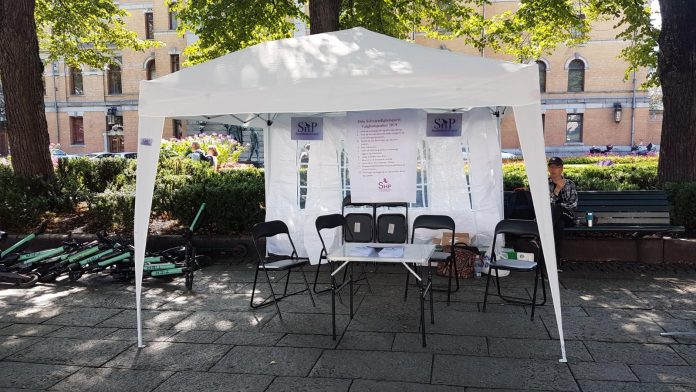 Resett rapporterte torsdag formiddag at den danske politikeren Rasmus Paludan gjestet Selvstendighetspartiets valgbod på Karl Johan samme dag, fra og med klokken 12. Paludan lot seg intervjue av Resett på plass.