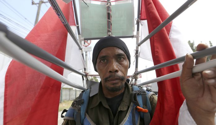 43-åringen begynte den 700 kilometer lange ferden fra hjemmet sitt i Mount Wilis til Jakarta på samme øy 18. juli. Fredag ventes han å ankomme den indonesiske hovedstaden.