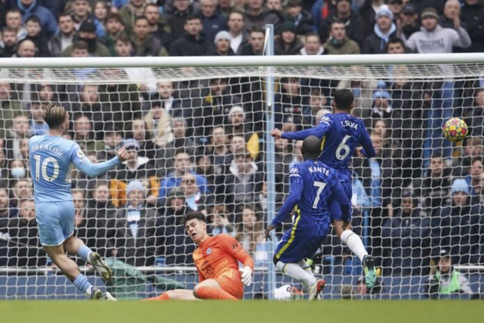 Kepa gjorde sakene sine bra like før pause da City fikk en kjempemulighet etter å ha vunnet ballen høyt i banen. Jack Grealish kom alene foran mål, men Chelsea-keeperen reddet med en beinparade og kom seirende ut av duellen med Citys milliardsignering.