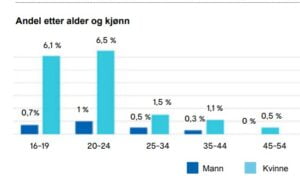 Det er jentenes egen rapportering som tallene baserer seg på. I aldersgruppen 16-19 år er det et nesten like høyt antall som oppgir å ha blitt voldtatt, hele 6,1 prosent.