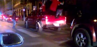 Politikvinne i sivil skyter en som forsøker å rane familier utenfor...