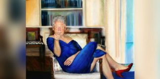 Portrett av Bill Clinton i kjole hang i Jeffrey Epsteins herskapshus