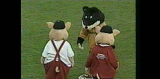 Vaktene må til slutt stoppe slagsmål mellom maskotene