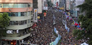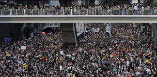 Demonstranter marsjerer mot omstridt togstasjon i Hongkong