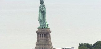 Kvinne klatret opp på Frihetsgudinnen for å protestere mot USAs innvandringspolitikk